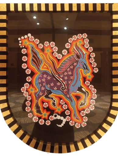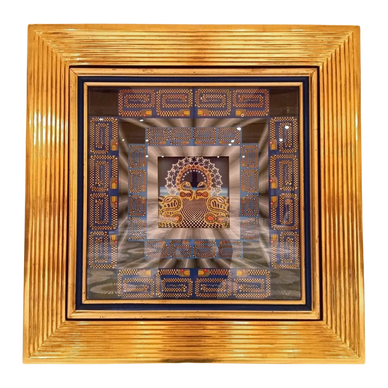Technique: Acrylic and ink on museum board. Gold leaf on wood frame