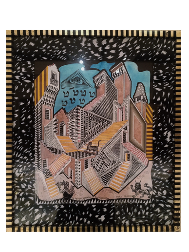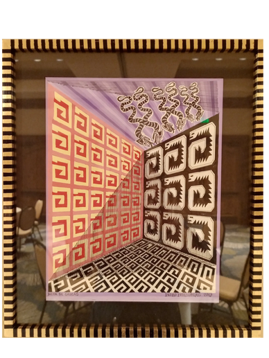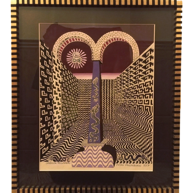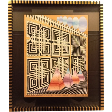 Pedro Friedeberg is a Mexican artist and designer known for his surrealist work filled with lines colors and ancient and religious symbols. His best known piece is the “Hand-Chair” a sculpture/chair designed for people to sit on the palm, using the fingers as back and arm rests. Friedeberg began studying as an architect but did not complete his studies as he began to draw designs against the conventional forms of the 1950s. His work caught the attention of artist Mathias Goeritz, who encouraged him to continue as an artist. Friedeberg became part of a group of surrealist artists in Mexico which included Leonora Carrington and Alice Rahon, who produced highly provocative art works, rejecting the social and political art forms that were dominant at the time.